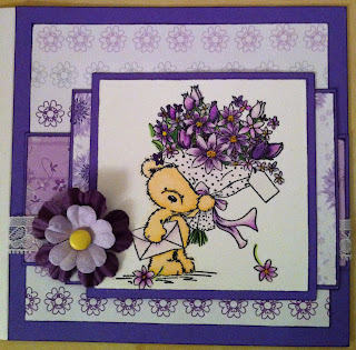 Next is Belz's darling card. That bear is so adorable and the coloring is fabulous. The purple colors are just so pretty.