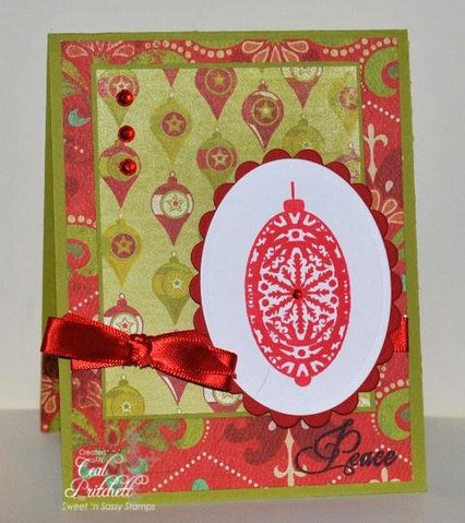 Next is Michelle's super cute card. That Rudolph images is just awesome. Love the blings on the tree and pretty papers. The shimmery snowflakes look great.